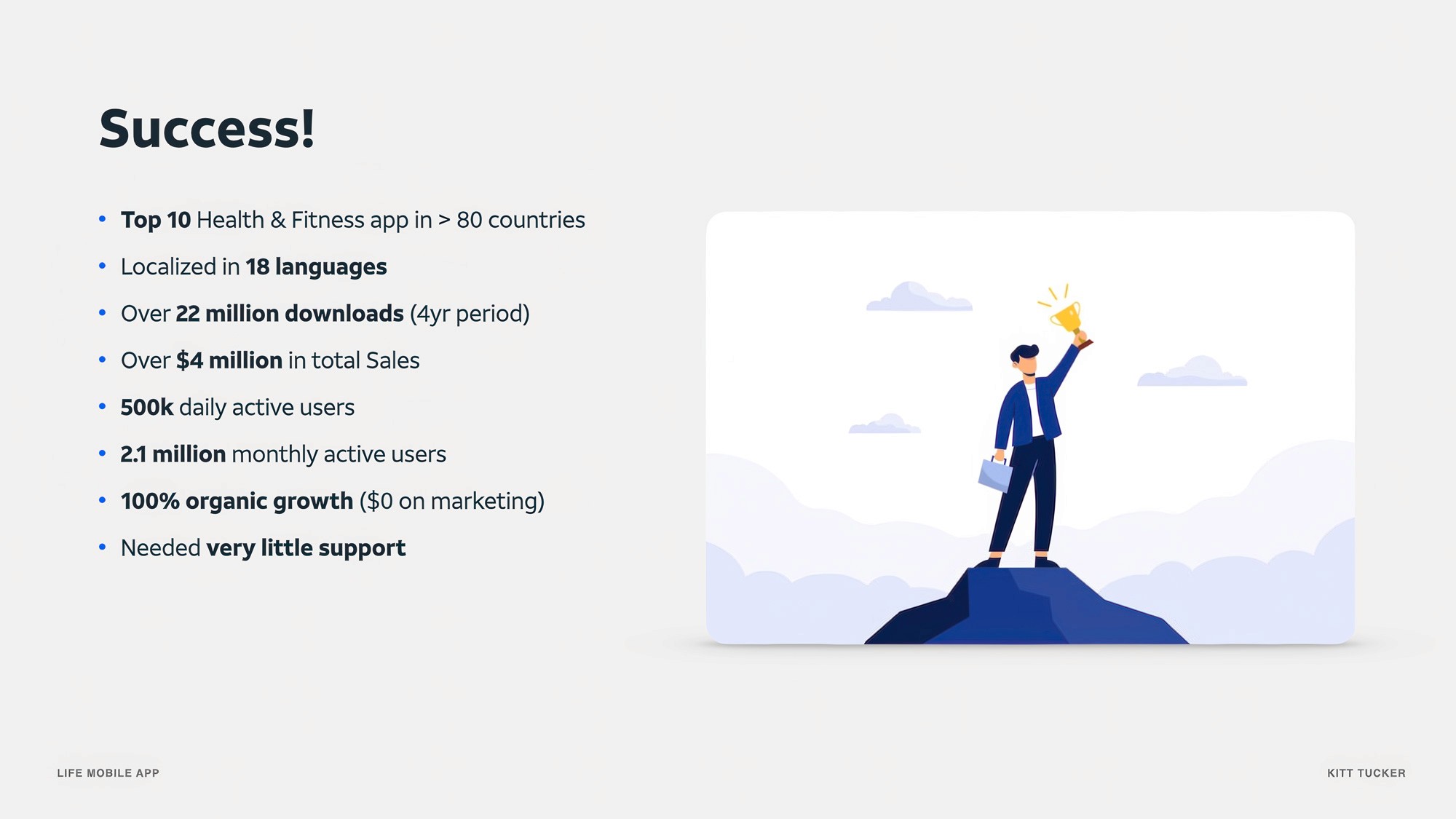 By 2018, Life had grown beyond our ability to manage and maintain it effectively as a two-person team. The app’s rapid growth, with millions of active users and global adoption, presented challenges in scaling operations to meet increasing demands.